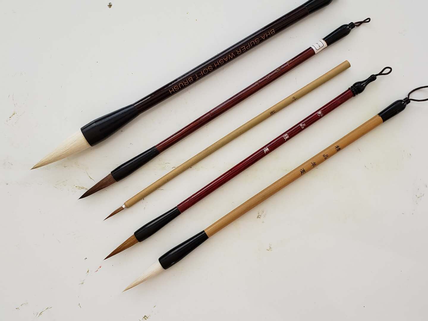 Set of Five Essential Brushes for Chinese Brush Painting and Calligraphy