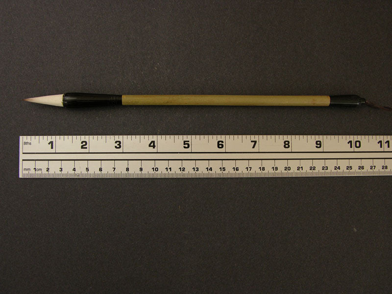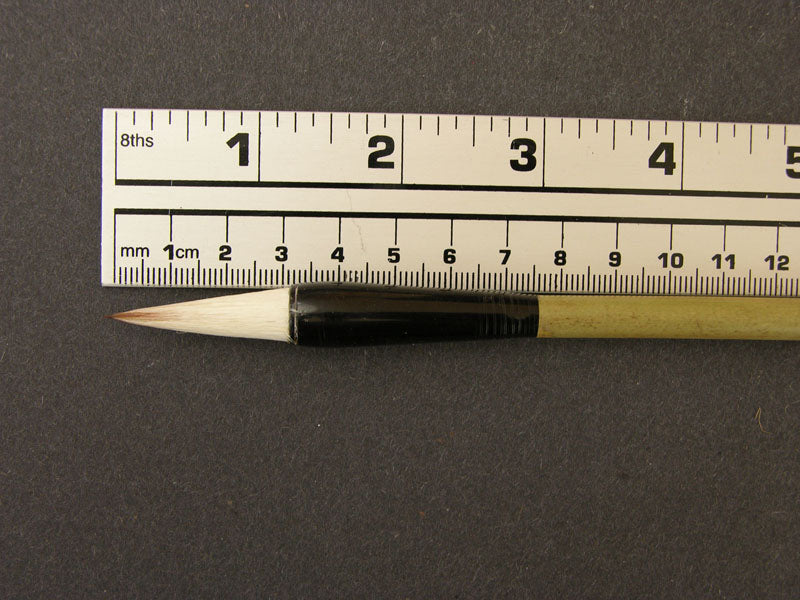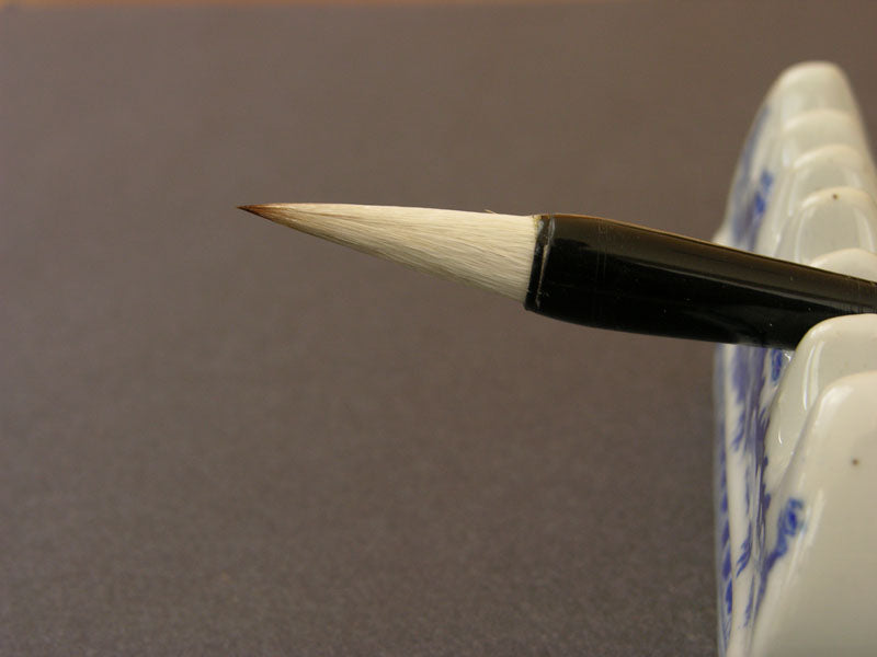 The inner core, made of high-quality wolf hair, combines flawlessly with the goat hair outer wrapping, which is meticulously chosen for its length and fine texture. When loaded with ink or color, this unique combination creates a perfectly pointed tip that ensures smooth maneuverability and dynamic strokes, regardless of the pressure applied. It is an ideal brush for beginners in Sumi-e painting and calligraphy, offering ease of use and consistent results.